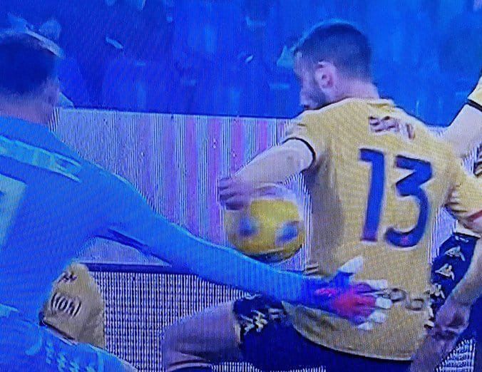 Dopo un primo tempo arbitrato discretamente , verso il 70esimo ha cambiato completamente atteggiamento, danneggiando la Juve. Come? Ammonisce in pochi minuti McKennie e Milik senza motivo, un fallo di mano in area, sanzionabile con un altro rigore (vedi immagine), ma come al solito non visto da nessuno, e la mancata espulsione di Malinovski con una entrata piede a martello sulla tibia di Yildiz…..