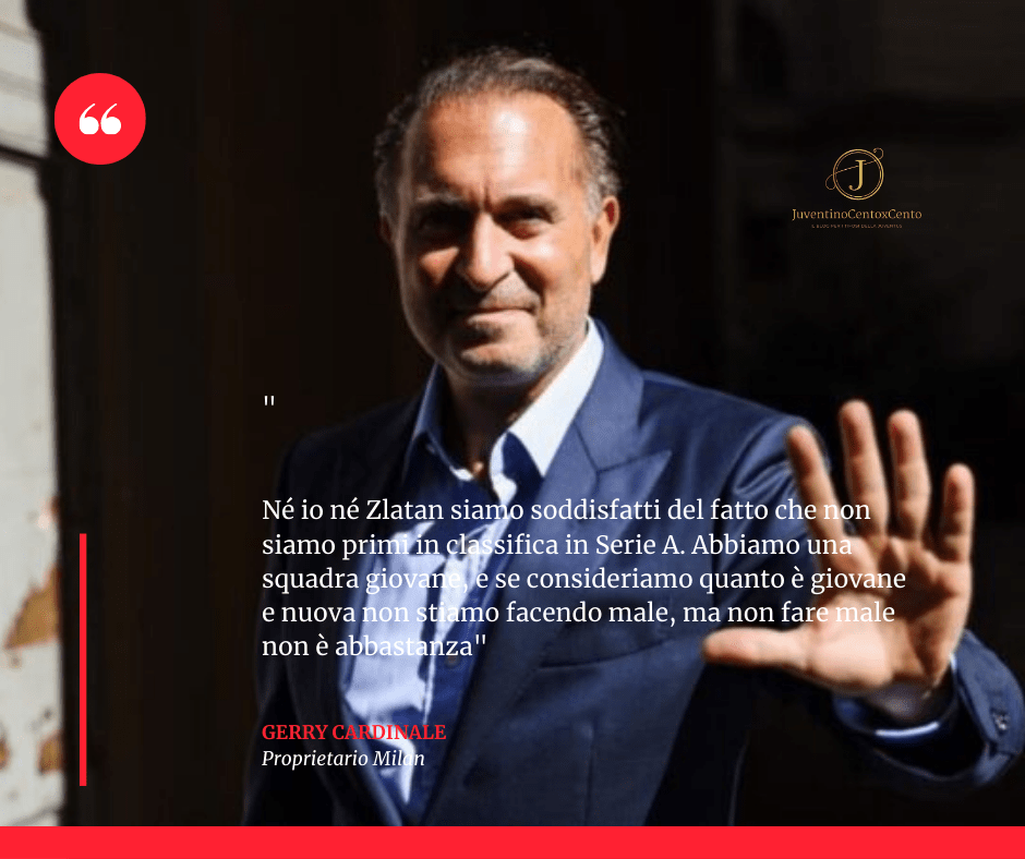 Ve ne rendete conto che stanno smantellando il DNA Juve solo per salvare panchine e poltrone? Addirittura è il Proprietario del Milan Gerry Cardinale a indicare quale sia la strada e a darci lezione di quale sia la mentalità vincente. Impensabile.