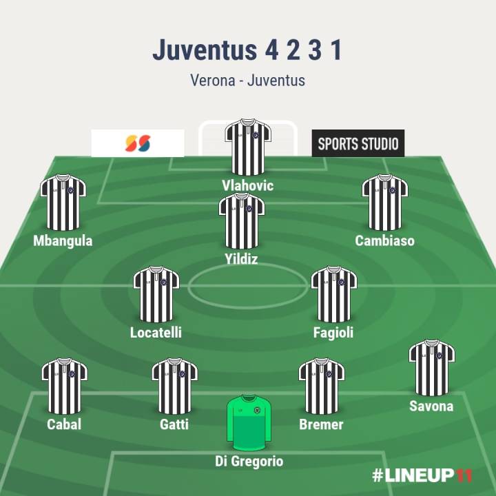 JUVENTUS (4-2-3-1): Di Gregorio; Savona (76′ Kalulu), Gatti (84′ Danilo), Bremer, Cabal (76′ Rouhi); Locatelli, Fagioli; Cambiaso (84′ Anghelè), Yildiz, Mbangula (68′ Douglas Luiz); Vlahovic. All. Thiago Motta. A disp. Perin, Pinsoglio, McKennie.